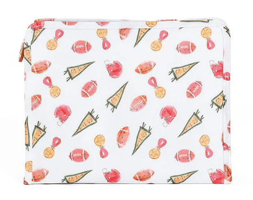 Our best-selling Roadies are our BFFs in the pouch world! Available in 3 sizes, our Large Roadie is made with a thin Eco-friendly matte coating, an inside slip pocket and exterior snap open zip tabs for a wider opening and an easier access.